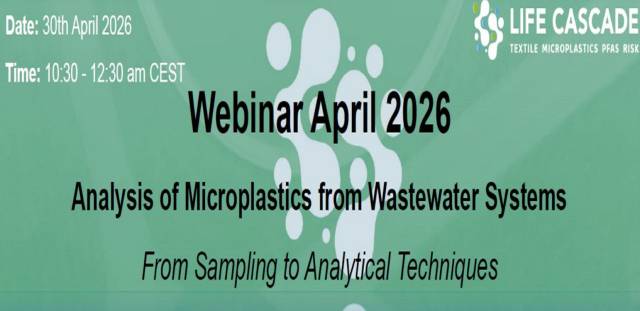 Il giorno 30 aprile 2026 CTSS,nell'ambito del Progetto “Life-Cascade” , dalle 10:30 - 12:30 am CEST, organizza il webinar: "Analysis of Microplastics from Wastewater Systems. From Sampling to Analytical Techniques".