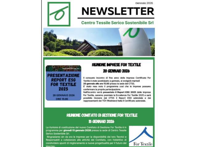 E' disponibile la nuova informativa SERVIZI 2025 del Centro Tessile Serico Sostenibile SRL. (...)