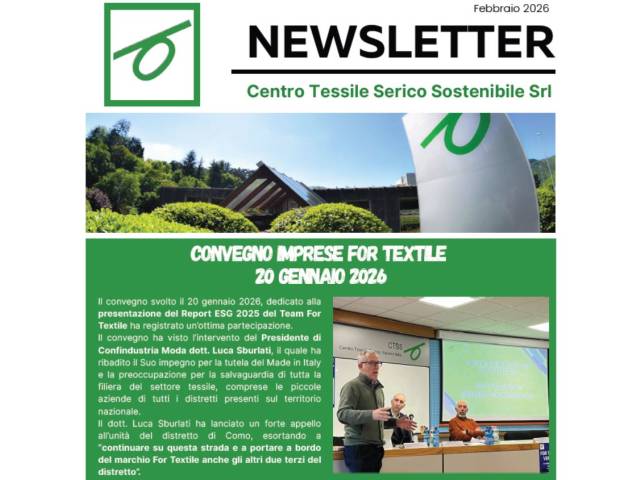 Centro Tessile Serico Sostenibile Srl con atto del 10 Luglio 2020 ha acquisito l’azienda Studio Albonico Sas per la parte delle attività di laboratorio di analisi e prove su materiale tessile, nonché di consulenza ed assistenza (...)